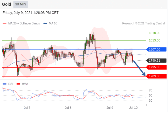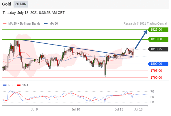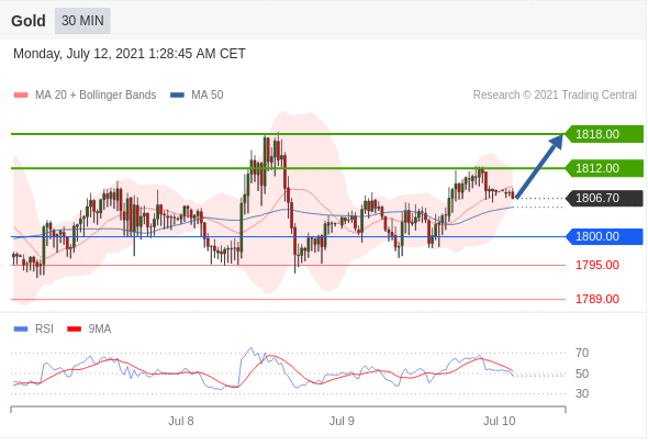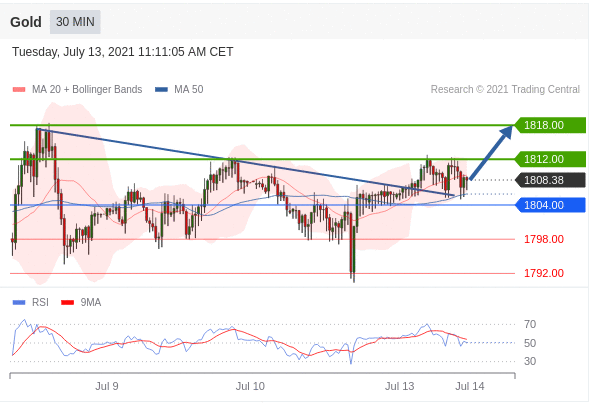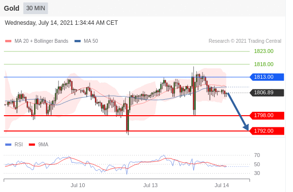 周一贵金属走弱,现货黄金下跌,美元攀升,美股达到创纪录高位,令金价承压。今日(7月13日)早盘开盘,现货黄金维持高位震荡,趋势上黄金价格只要站稳在1790美元上方,看涨意图仍然不变。 今日晚间,美国劳工部将发布6月CI数据,由于美国5月CI数据继续维持上涨势头,并且增速创下2008年8月以来最高值,当前市场将密