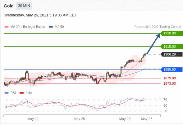 金价飙升至1月以来最高水平,能否持续下去? 周二,随着美国国债收益率的下滑和美元的下跌,黄金飙升至1月初以来的最高水平。黄金价格的上涨使其突破了8月份以来的下降通道的上轨,并进一步扩大了4月初开始的反弹,而当时黄金在1700美元以下交投。 XAU/UD自此贴上了1900美元的标签,而如果美联储放弃对缩减购债
