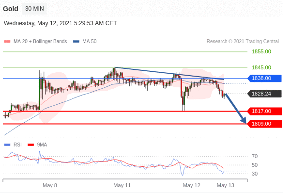 周三(5月12日)亚市盘中,美元指数继续反弹,现货黄金短线大幅下跌,金价最低下探至1825美元/盎司。10年期美国国债收益率上升3个基点至1.631%,增加了持有无息黄金的机会成本。 前纽约联储主席杜德利周二警告称,尽管美联储已经承诺在撤销对经济的支持方面将保持耐心,但美联储真正开始收紧政策时,或许加息已经为时已