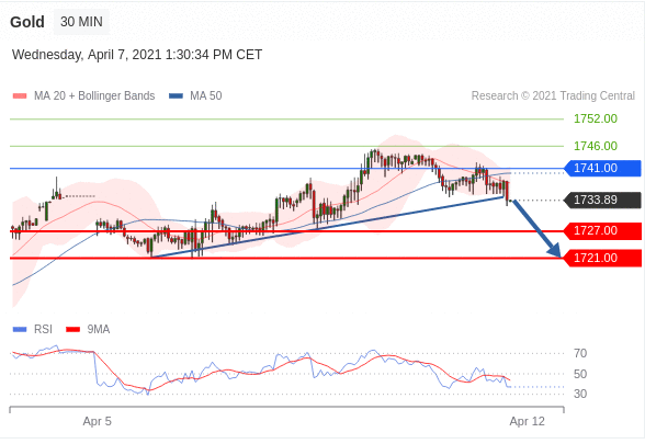 周四(4月8日)午后盘,现货黄金重新走强,美元指数重新走低,限制了金价下行空间。隔夜美联储FOC释放鸽派,但拜登基建仍提振美债以及标准普尔指数收盘创下历史新高,也正逼迫黄金退回坚守的阶段。 目前,黄金被困在最近盘整区间的低端。1755美元/盎司和1676美元/盎司之间是一个强劲区域,黄金已经来到了十字路口。由于