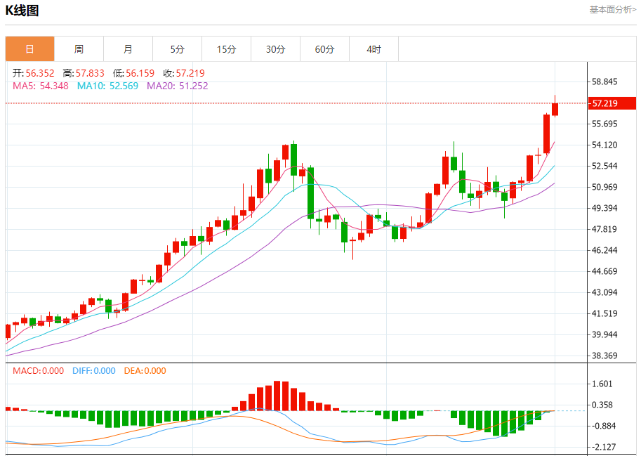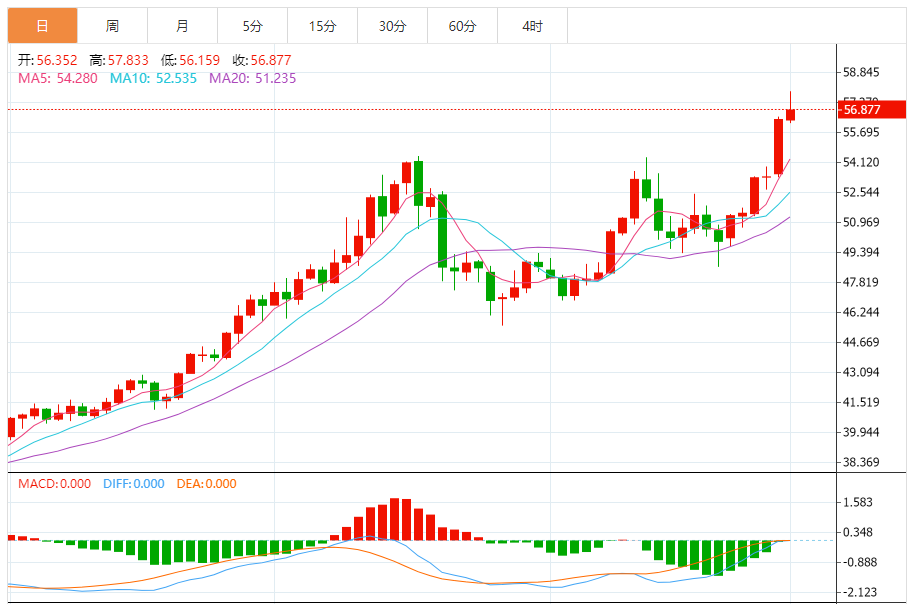 周四盘中,现货白银报57.370,跌幅1.92%。 今日分析:在56.58之上,看涨,目标价位为57.83,然后为58.79。 技术点评:56.58附近形成了一个支撑的底部,将带来走势短期内的稳定。 支撑位:56.5856.1555.77 阻力位:59.6558.7957.83 (亚汇网编辑:冰凡)