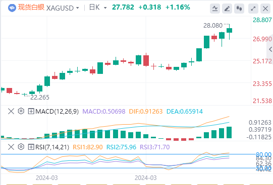 对于目前徘徊在28.09美元左右的白银,这种情况的前景喜忧参半。虽然降息的延迟可能会削弱即时收益,但最终放松货币政策可能会增强白银作为对冲货币贬值和通胀压力的吸引力,从而可能在中期推高价格。