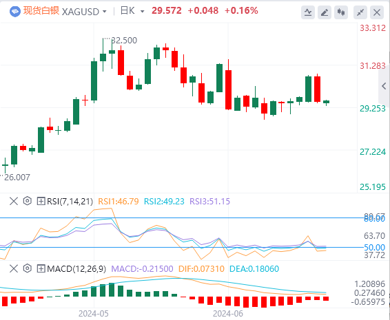 上行方面,如果银价重拾升势,下一个阻力位就是6月7日的高点31.54美元。突破这一水平后,目标将是32.00美元,然后将挑战今年迄今(YTD)高点32.51美元。