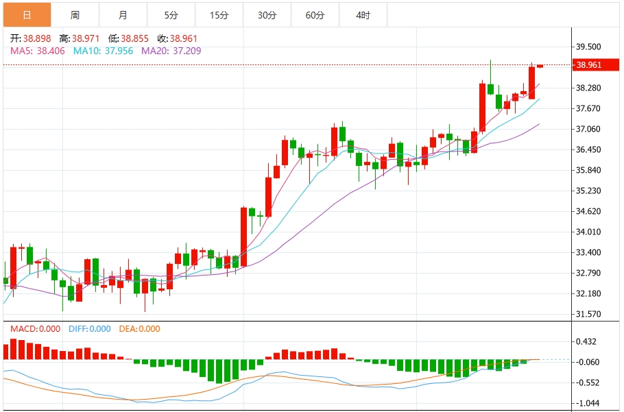技术上,白银似乎准备挑战39.12美元的年内高点,在当天最终突破38.00美元和38.50美元的水平。 相对强弱指数(RSI)显示动能看涨,RSI进入超买区域,但尚未达到80的极端水平。