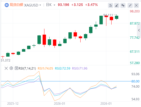 上行方面,白银价格可能测试上升通道约96.80美元上线,随后是心理关卡97.00美元