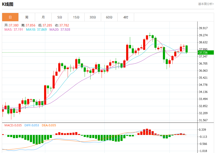 8月7日,周四欧市初盘,白银在38.05美元附近扩大上涨空间。在美元走软的情况下,白银连续第五天处于正值区域。投资者将从周四晚些时候美联储(Fd)官员的讲话中获得更多线索,其中包括拉斐尔·博斯蒂克(RahalBotic)和阿尔贝托·穆萨勒姆(Albrtoual)。 美国总统唐纳德·特朗普周三表示,他可能会对中国征收进一步的