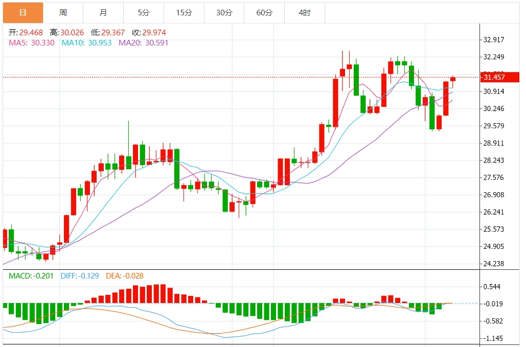 白银价格 冰凡 2024-05-30 20:33 130