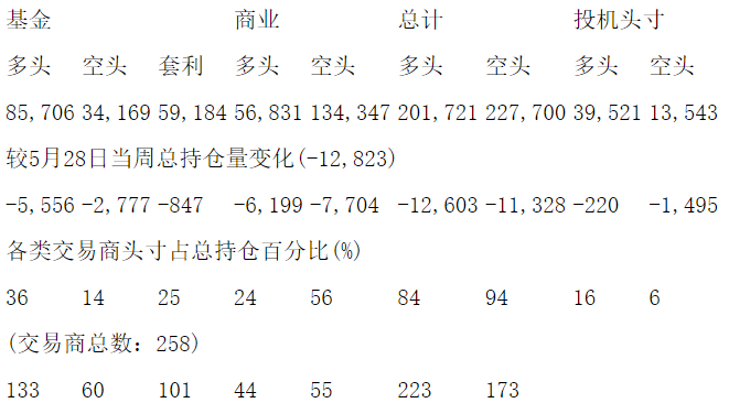 美国商品期货交易委员会(CFTC)最新公布截止6月4日当周COX白银期货分类持仓报告: 合约单位:5000金衡盎司总持仓量:179854