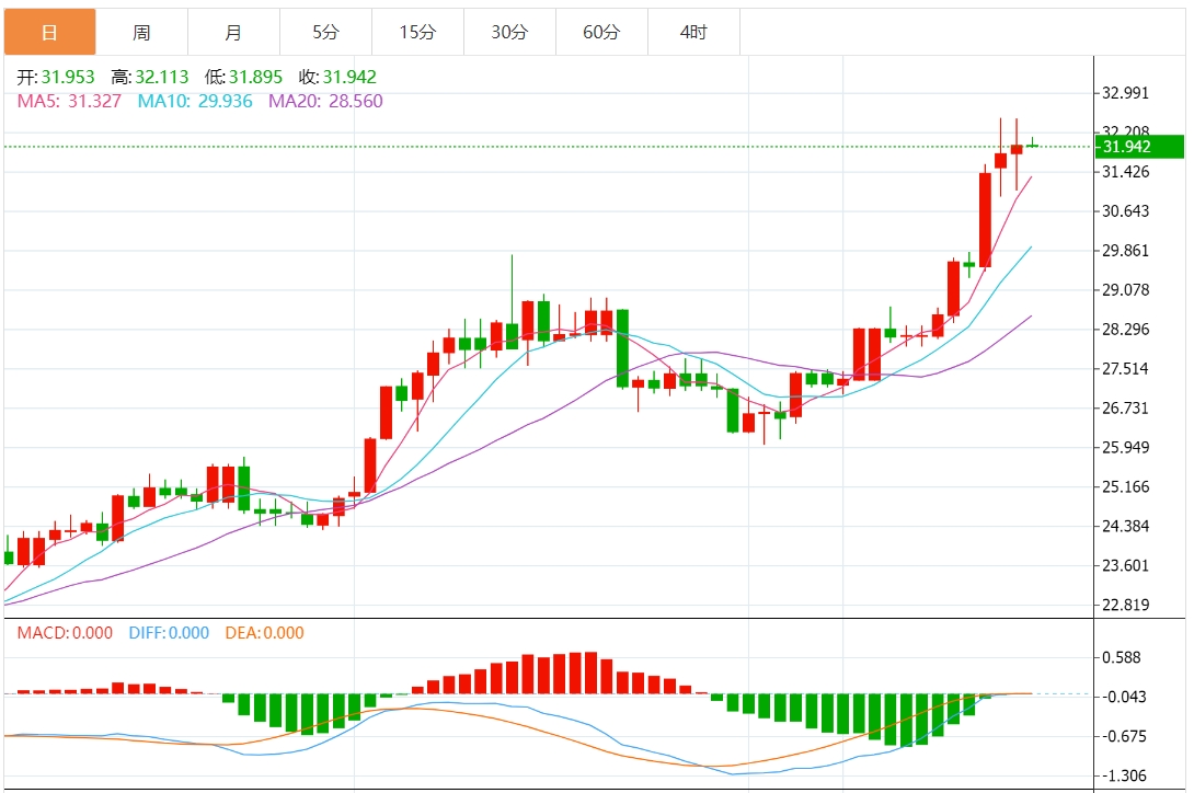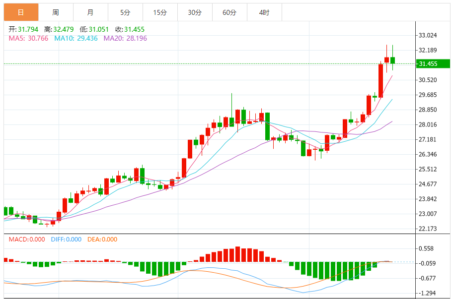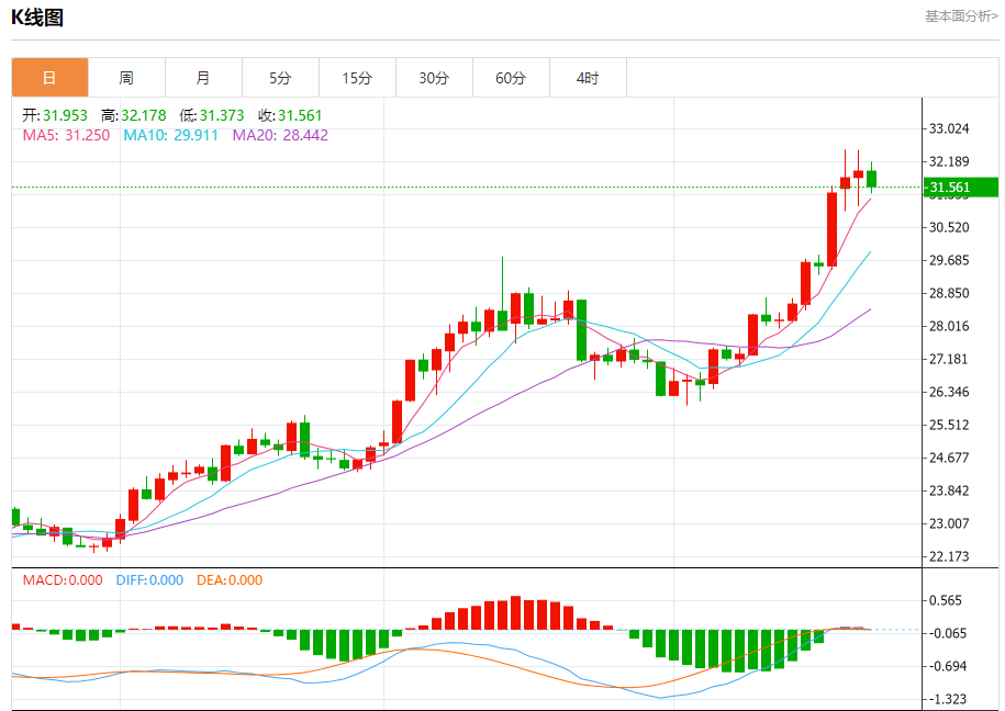 周三欧盘,白银价格从最高水平32.51美元回落后继续下跌,这是自2012年12月以来的最高水平。截止发稿,白银价格在每金衡盎司31.80美元附近。投资者评估美联储官员最近的言论,几位政策制定者主张继续保持政策谨慎。 白银市场基本面分析 波士顿联邦储备银行行长苏珊·柯林斯(uanCollin)周二强调,利率调整的进展将需