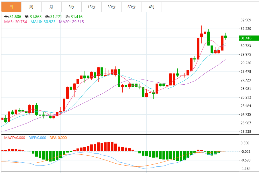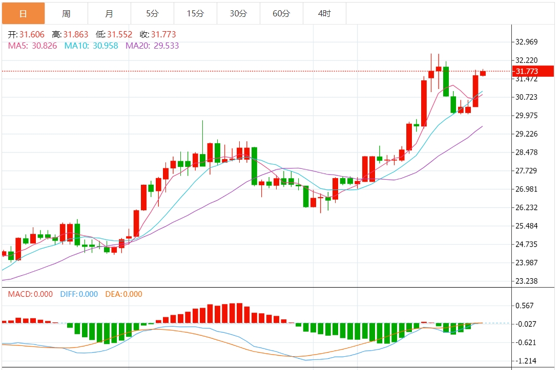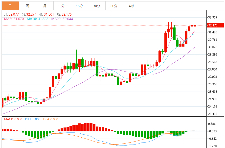 周三(5月29日),现货白银目前位于32.161美元/盎司,涨幅为0.29%。白银价格昨日明显恢复积极交易,达到32.00美元关口,强化了未来一段时间继续看涨的预期,等待更多上涨以实现我们的积极目标,从32.50美元开始,然后是33.25美元。 A50继续从下方支撑价格,以加强积极的概述,这将在价格稳定在31.00美元以上的条