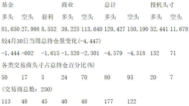 美国商品期货交易委员会(CFTC)最新公布截止5月7日当周COX白银期货分类持仓报告: 合约单位:5000金衡盎司总持仓量:161868