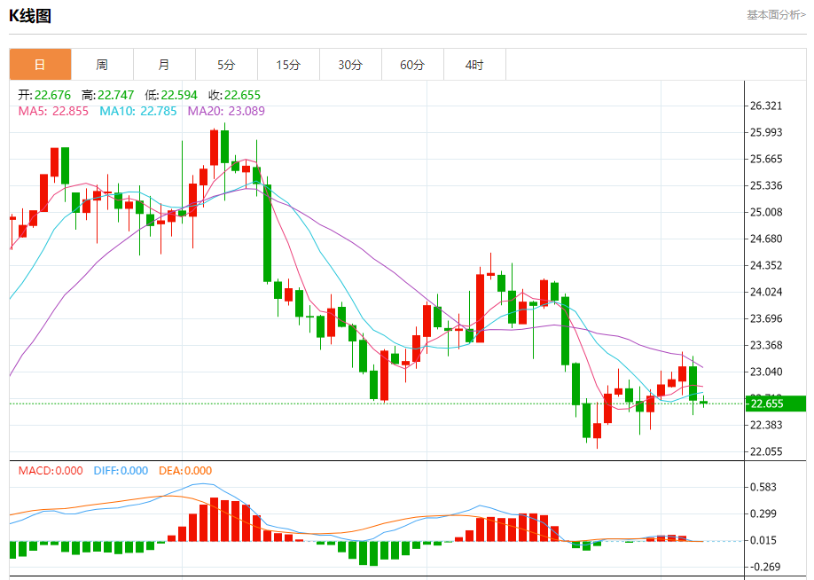 周一盘中,现货白银报22.880,跌幅0.76%。 今日分析:在22.88之上,看涨,目标价位为23.15,然后为23.30。 技术点评:RI技术指标缺乏下降动能 支撑位:22.8822.7422.60 阻力位:23.4523.3023.15 (亚汇网编辑:冰凡)
