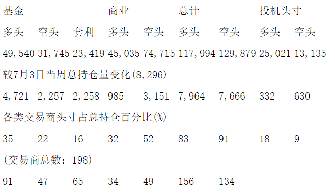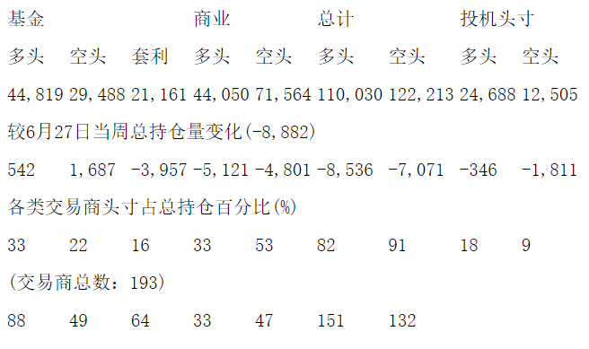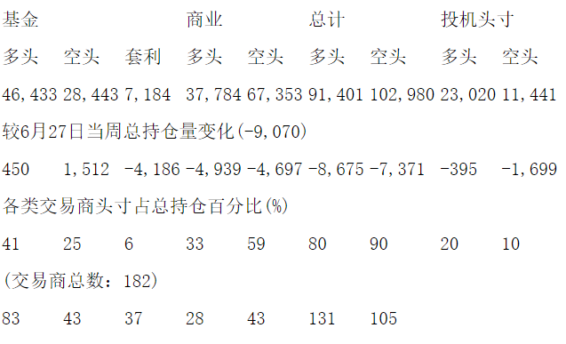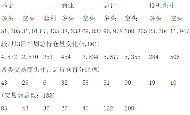 美国商品期货交易委员会(CFTC)最新公布截止7月3日当周COX白银期货分类持仓报告: 合约单位:5000金衡盎司总持仓量:114421
