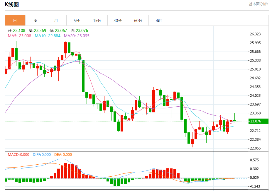 基本消息面 周二(7月11日),现货白银短线持续走强,银价目前接近23.40美元/盎司,日内大涨1%。根据conoi.co,银价已经确认突破重要阻力23.00美元/盎司,这为银价进一步大涨打开空间。美元指数持续承压,目前位于101.70附近。美元走势利好银价走势。 相关新闻消息 银价昨日上升并确认突破23.00美元/盎司。银价维