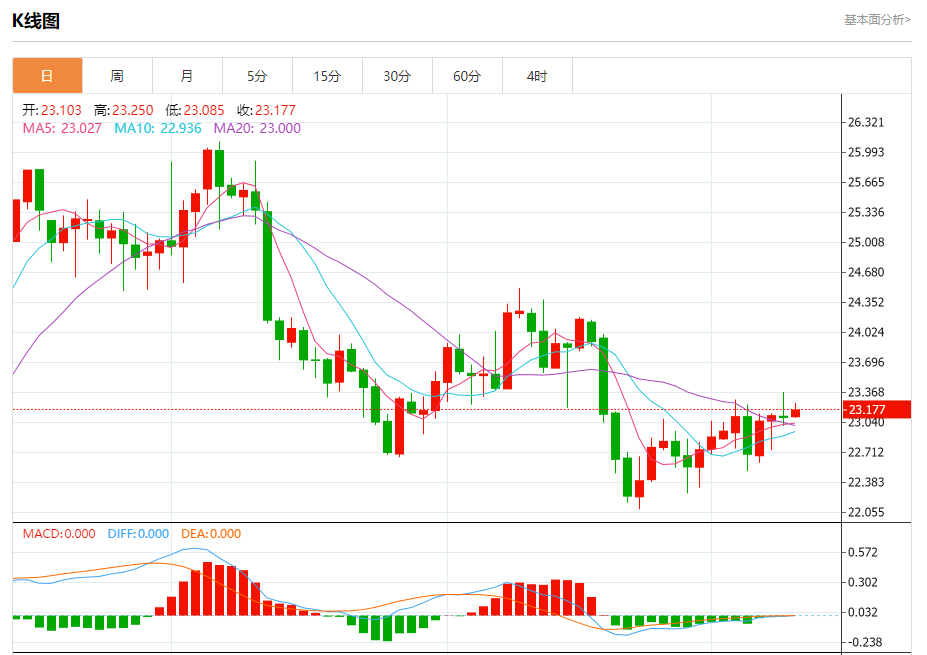 白银在周三亚市吸引了部分逢低买盘并停止自100日A均线附近以来的跌势。该白色金属目前交投于23.25美元附近,日内上涨近0.50%,且仍接近周二触及的三周高点。 从更广泛的角度看,近期银价自6月23日录得的数月低点22美元反弹一直处于一个上升通道内。这表明短期为上行趋势,有利于看涨交易员。此外日图技术指标刚开始
