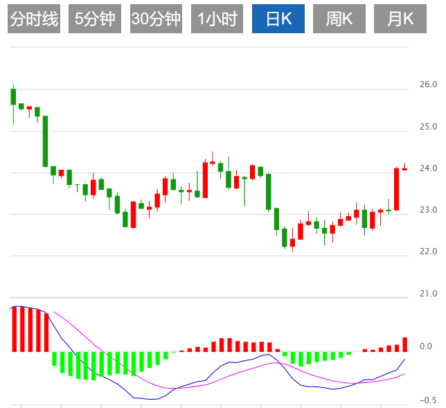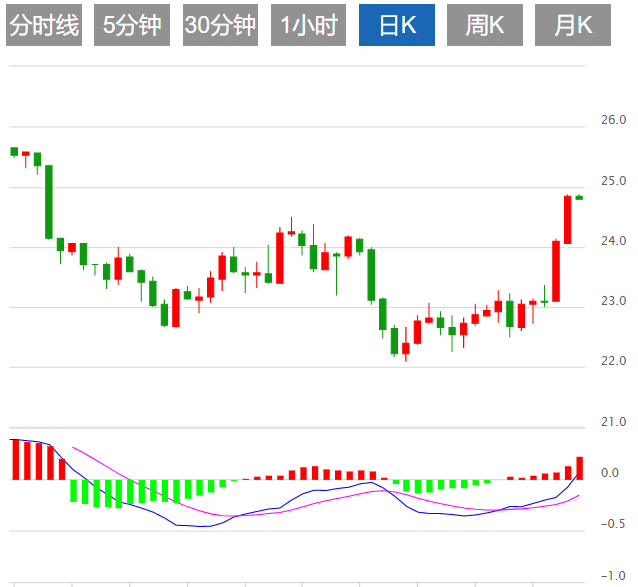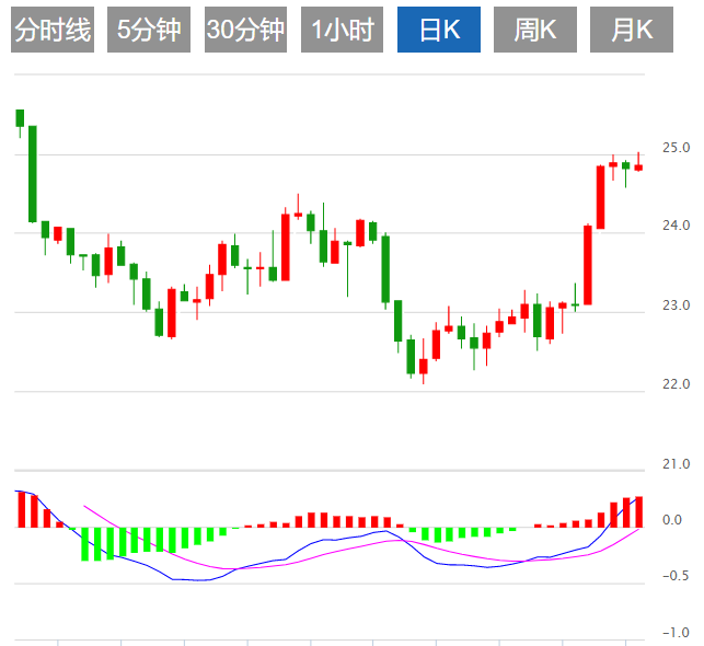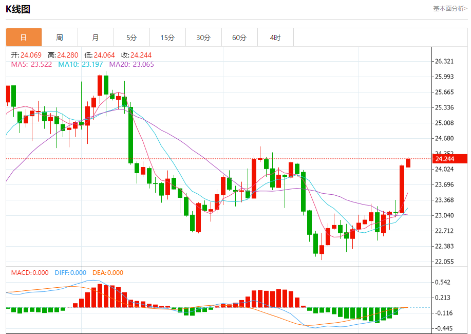 周四亚盘,白银利用隔夜突破动能突破100日A均线并亚市获得后续牵引。该白色金属在过去一个小时触及一个月高点24.25美元区域附近,料延续过去三周的涨势。 在前日大涨的背景下,升穿5-6月跌势的50%回档位可能被视为看涨交易员新的触发器。此外日图技术指标一直上升,仍远未处于超买区域。这进而印证了乐观前景并表明
