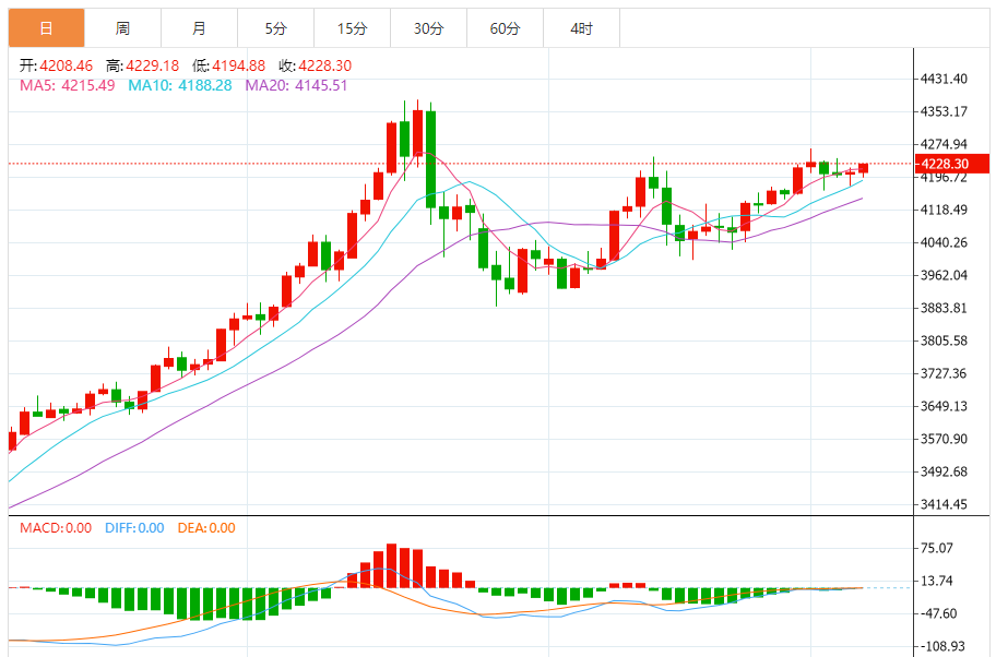 周五(12月5日),现货黄金目前位于4228.01美元/盎司附近,涨幅为0.46%。