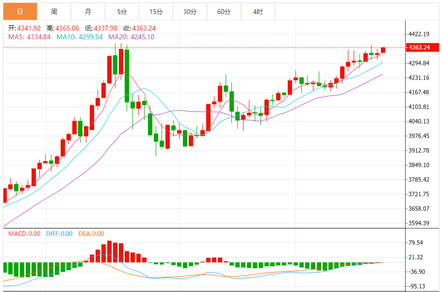 周一(12月22日),现货黄金震荡上涨,一度触及4365关口,目前交投于4363.61美元/盎司附近。