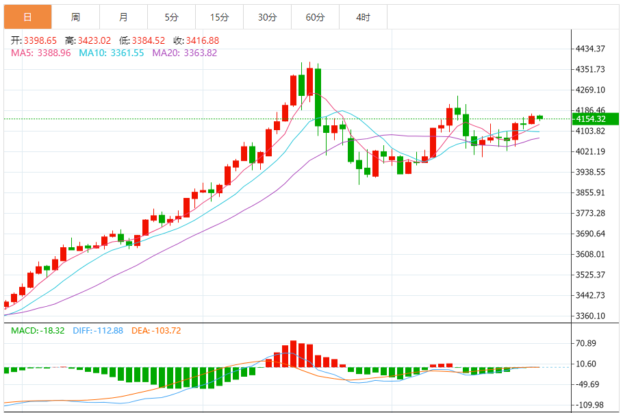 汇通财经APP讯——周四(11月27日),现货黄金自隔夜创下的近两周高点小幅回落,当前交投于每盎司4156.89美元附近。美国市场因感恩节休市导致整体交投清淡,但金价在近期高位附近的震荡,清晰地反映了市场正在重新评估从关键技术指标来看,金价当前正处于一个短期方向选择的关键节点。1.趋势结构与均线系统金价目前稳定地位于60周期简单移动平均线(60SMA:4100.56)之上,该均线构成了近期回落的重要动态支撑。价格在均线上方的整固,表明自10月高点以来的回调可能只是长期上升趋势中的一次健康修正,而非趋势的反转。只要金价能坚守在4100美元上方,短期技术结构就仍偏向积极。2.布林带与波动性分析布林带(参数20,2)的当前状态提供了重要的市场波动性信息。其中轨位于4138.61,上轨位于4191.35,下轨位于4085.86。当前金价4157.52运行于中轨上方,属于偏强震荡格局。布林带通道整体保持宽阔,说明市场的波动性依然处于较高水平,为价格的潜在单向波动提供了空间。上方4191.35的上轨将成为短期内首个重要阻力,若能有效突破,可能激发新一轮的买盘兴趣。3.动量指标MACD解读MACD(参数26129)指标显示,DIFF值为18.53,DEA值为18.41,两者均处于零轴上方且非常接近,MACD柱状图近乎于零。这通常意味着当前市场的多空动能处于一个微妙的平衡状态。金价在经历了一轮反弹