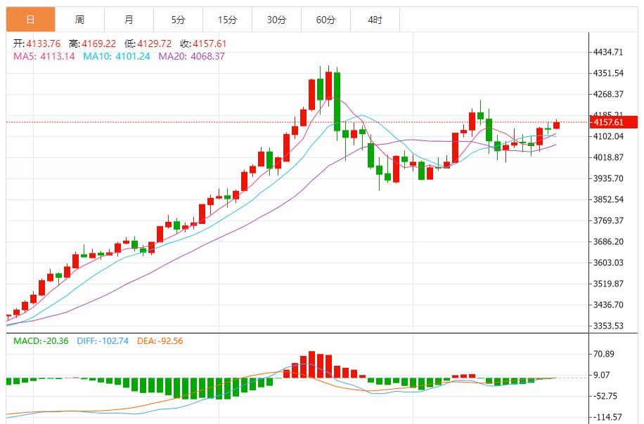基本消息面 周二(11月25日)纽约尾盘,现货黄金跌0.14%,报4130.59美元/盎司,日内交投于4159.30-4109.68美元区间。COX黄金期货涨0.81%,报4127.20美元/盎司。 相关新闻消息 美联储新任主席遴选中白宫国家经济委员会主任哈塞特被视为领跑者 据知情人士透露,随着美联储新任主席人选的遴选