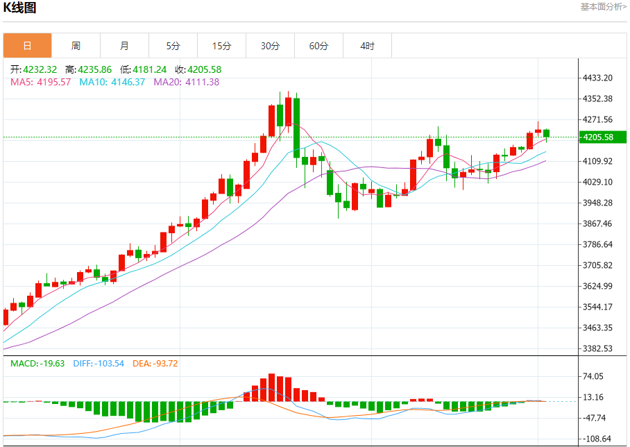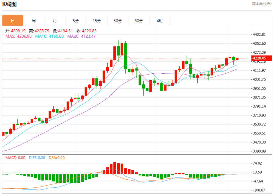 周三盘中,现货黄金报4220.66,涨幅0.36%。 今日分析:在4193之上,看涨,目标价位为4229,然后为4243。 技术点评:随后的阻力位是4229,然后为4243。 支撑位:419341804160 阻力位:426442434229 (亚汇网编辑:冰凡)