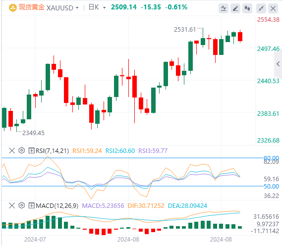 不利的一面是,初始支撑位位于2500美元的整数位。突破上述水平可能会导致在8月22日的低点2470美元附近进一步下跌。下一个值得关注的争夺水平是2432美元,即8月15日的低点。