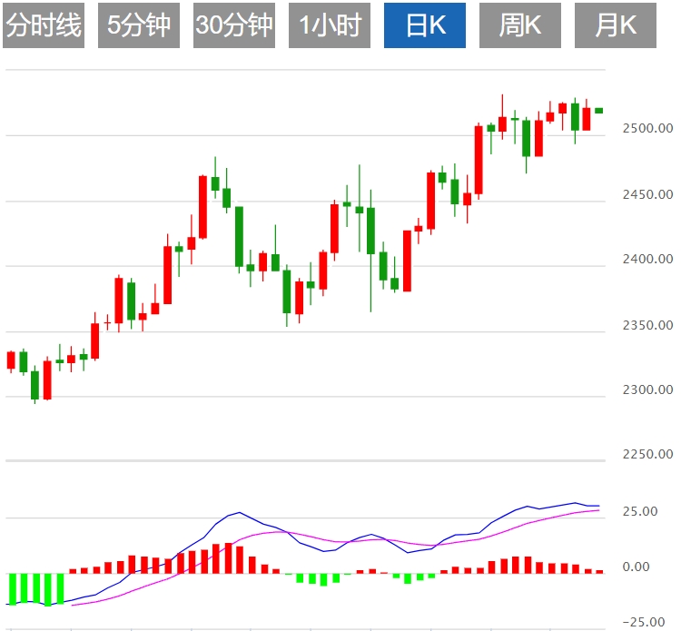 黄金市场在近期表现出强劲的上行趋势,现货黄金价格再次攀升至2523.13美元,距离2531.60美元的历史高点仅一步之遥。这主要受益于美元走软和市场对美联储降息的强烈预期。然而,尽管整体基本面利好,短期内黄金市场可能面临一定的调整压力。