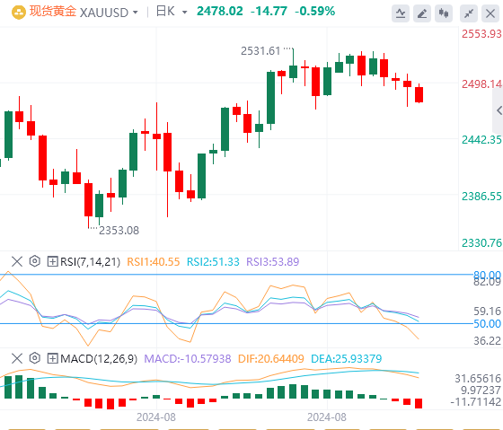 尽管美国联邦储备委员会(美联储)在9月18日的会议上选择更大幅度降息0.50%的市场概率大幅上升,但金价未能获益上涨。