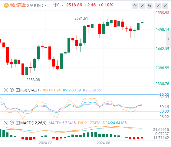 此前,美联储在周三公布的疲软的JOLTS就业数据使美联储在9月18日会议上降息0.50%的可能性相对较高。反过来,这对黄金有利,因为较低的利率降低了持有非付息资产的机会成本。