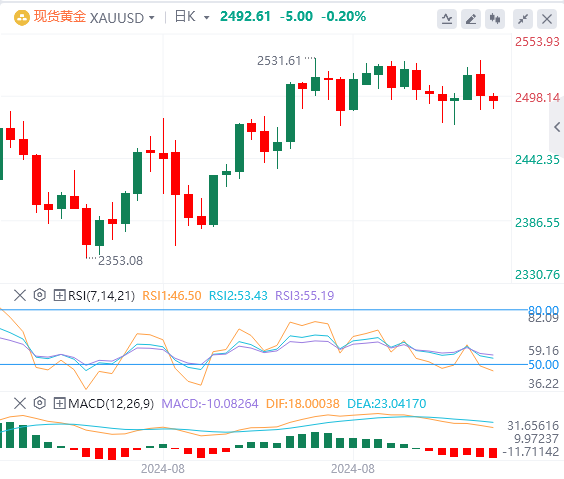 短期预测上,黄金交易价为2486.75美元,测试关键阻力位2500美元。突破该水平可能瞄准2511美元,而支撑位位于2471美元。