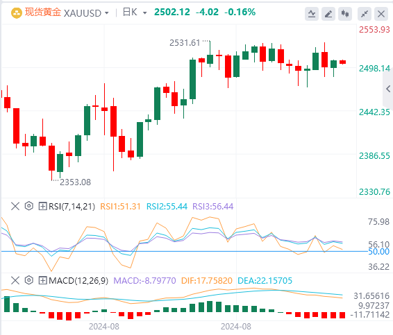 面对关键数据风险,美元回升至接近上周触及的月度峰值,因为对美联储9月份更大幅度降息的押注减少。这与全球股市的稳定表现一起,被认为削弱了避险黄金价格。尽管下跌,但XAU/USD仍局限在过去三周左右的熟悉区间内,这表明交易员对近期轨迹犹豫不决。这进一步使得等待强劲的后续抛售变得谨慎,然后再为延续近期从上周五喜忧参半的美国就业报告发布后测试的历史峰值附近的回调做准备。
