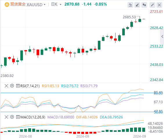周四,现货黄金维持创纪录涨势,盘中刷新高位至2685美元,截至目前,黄金报价2670.68。