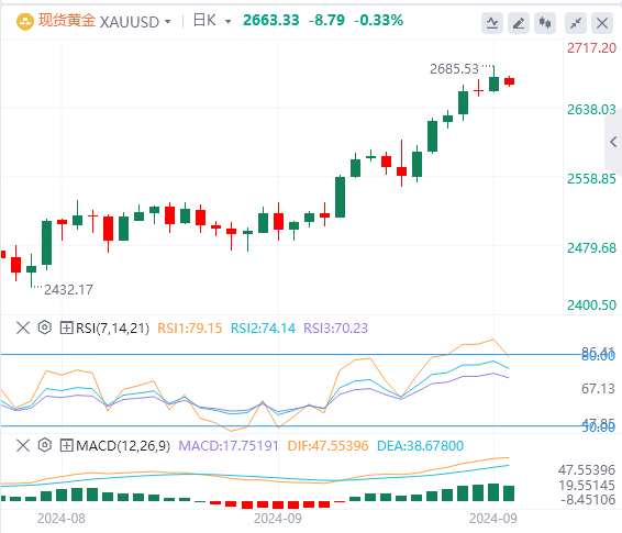 虽然中东的地缘政治紧张局势继续支撑对黄金等避险资产的需求,但由于风险偏好不断增长和美元走强,上行空间仍然有限。然而,对美联储11月大幅降息的预期为黄金提供了一些基本支撑。