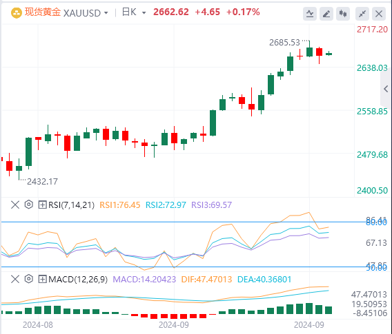 黄金交易员将关注中国采购经理人指数(PMI)以寻找新的动力。预计9月份国家统计局制造业采购经理人指数将从49.1提高至49.5,而服务业采购经理人指数预计将从前值的50.3上升至9月份的50.4。弱于预期的数据可能会令作为中国最大黄金进口国的黄金承压。