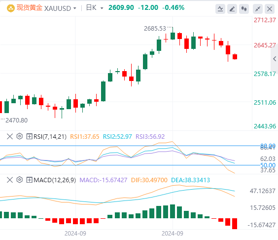 由于美联储更激进的宽松政策的可能性越来越小,美元在上周五触及的数周高点附近趋稳,这拖累金价跌破周二的关键支撑位2630美元。