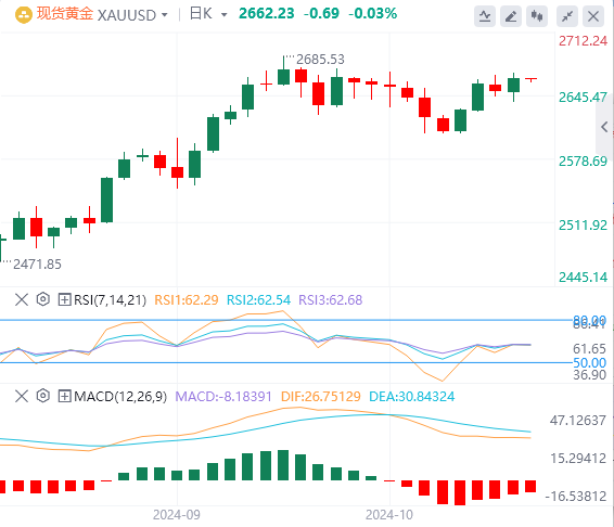 周二,黄金价格小幅走高,测试周线高点,离9月份创下的纪录高位2,685.45美元不远。金价受益于风险厌恶情绪和美元需求缓解,尽管金价远未转为看跌。