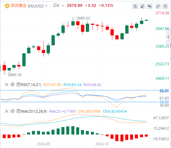黄金的上升趋势仍然存在,买家向年初至今的高点2,685美元发起了第一次攻击,但他们未能突破后者。正如相对强弱指数(RSI)所示,势头仍然看涨,为更高的价格打开了大门。因此,黄金的第一个阻力位是年初至今高点2,685美元。一旦清除,将移动到2,700美元,然后是2,750美元和2,800美元。相反,如果黄金跌破10月4日的高点2,670美元,则有望回撤至2,650美元。如果进一步走软,下一个支撑位将是2,600美元,然后是50天简单移动平均线(SMA)2,561美元。