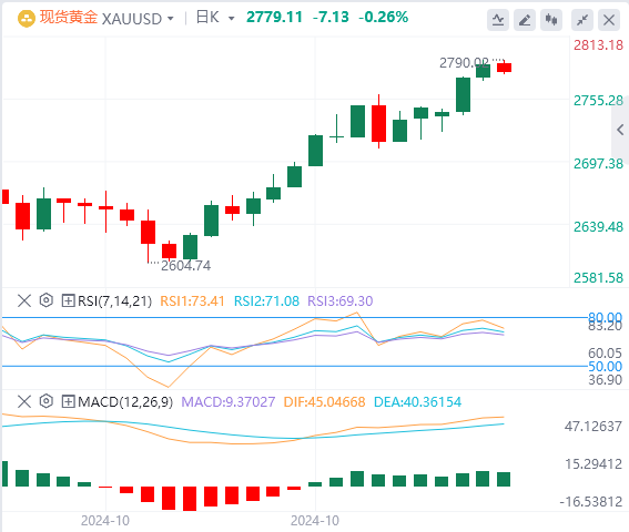如果价格成功突破2790.22美元,则可能会看涨至2803.33美元和2815.26美元。然而,跌破直接支撑位2772.47美元可能会引发进一步下行,目标为2760.49美元。