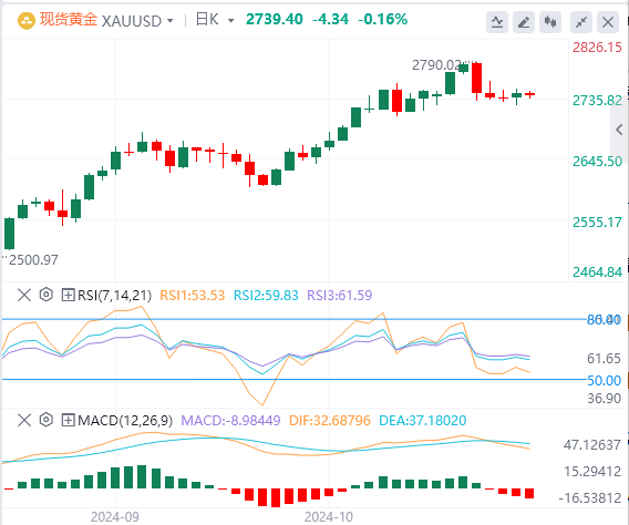 关键事件之前,金价维持震荡,盘整于2740美元关口附近。日图显示,金价连续三日方向不明。另外,金价维持在所有均线上方,看涨的20简单移动均线(均线)在2710美元附近提供了动态支持。100和200移动均线也朝北,即便处在短期均线远下方。同时技术指标仍保持在政区,维持适当的下跌倾向,不足以确认会再次走低。