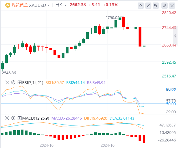 周三,随着投资者在特朗普当选美国总统后涌入美元,机制目前黄金报价2662.38。