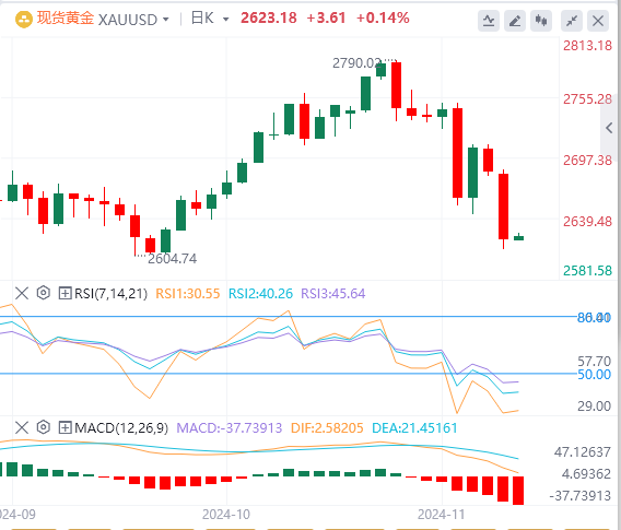 另一方面,如果黄金突破2700美元,买家将把目光投向20日均线2718美元,然后是2750美元,然后是10月23日的高点2758美元。