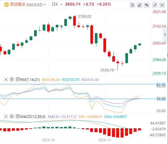 不过,由于近期的美国经济数据,再加上市场预期共和党的政策可能会助长通货膨胀,从而增加了利率在较长时间内保持高水平的可能性,因此预计未来几周黄金仍将受到关注。虽然黄金传统上被视为通货膨胀的保值工具,但利率上调使得这种零收益资产金价对投资者的吸引力下降。
