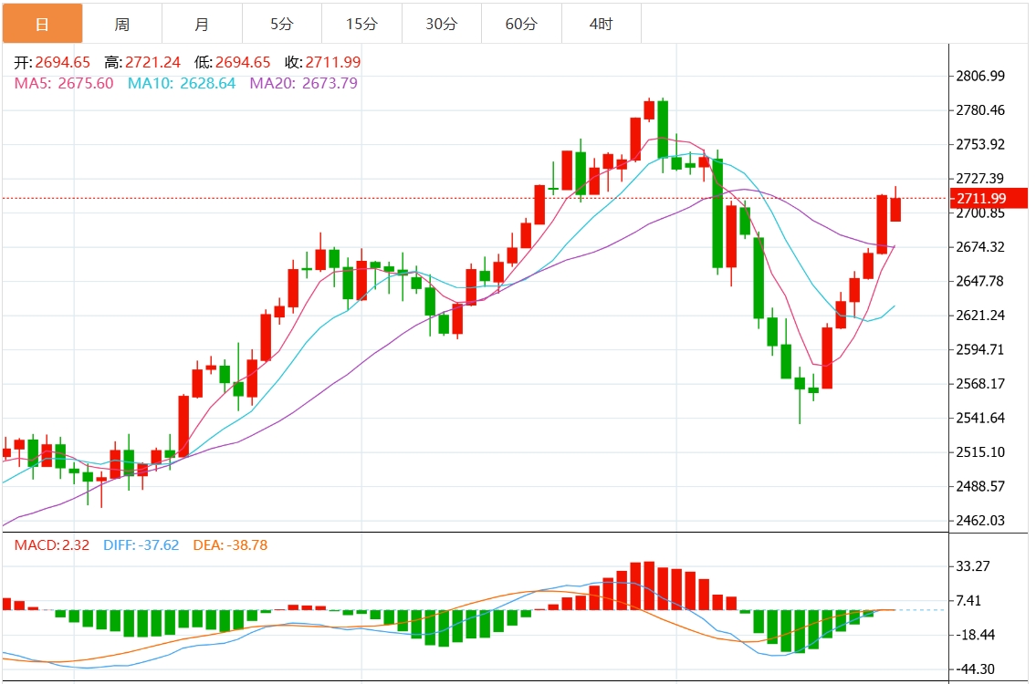 技术上,黄金的涨势将继续,价格有望再次挑战2750美元。黄金上周突破50日简单移动平均线(SMA)的2663美元后,促使买家推高黄金现货价格。在此环境下,如果金价突破2750美元,则下一步将突破历史高点2790美元。突破后一个水平将使2800美元的关口暴露无遗,并为测试3000美元铺平道路,高盛认为3000美元是下一个主要阻力位。