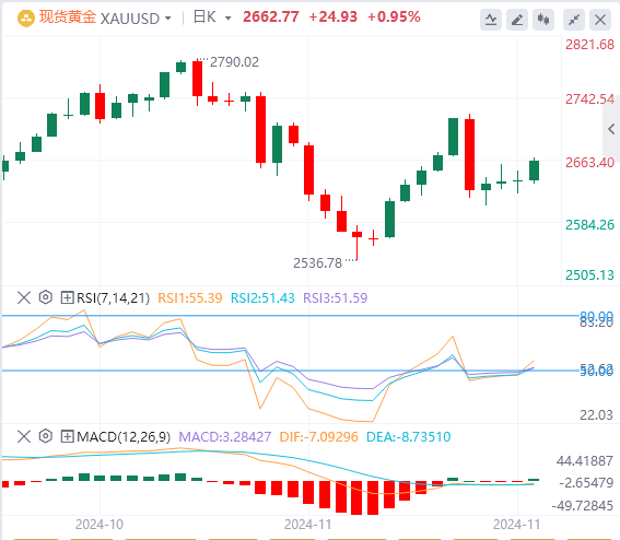 50天EMA位于2644.55美元,提供近期支撑,而200天EMA位于2649.97美元,加强了看涨趋势。