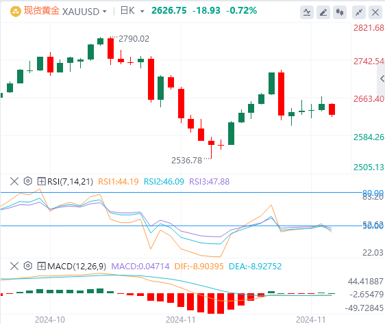 12月2日,周一欧市初盘,金价在新的一周/月初吸引大量抛售,并在亚洲时段跌至2623-2622美元区域,在美元需求回升的情况下结束了连续四天的上涨。市场预期美国当选总统唐纳德·特朗普的关税计划可能会重新点燃通胀压力,并限制美联储(Fed)降息的空间,这引发了美国国债收益率的新一轮上涨。这反过来又帮助美元从周五触及的近三周低点强劲反弹,并成为推动资金流离无收益黄金的关键因素。
