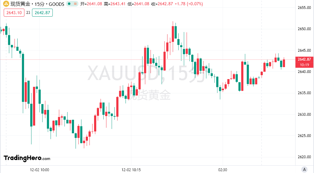 周一,现货黄金跌后反弹,但在美盘又回吐大部分涨幅,最终收跌0.44%,截至目前,黄金报价2641.08。