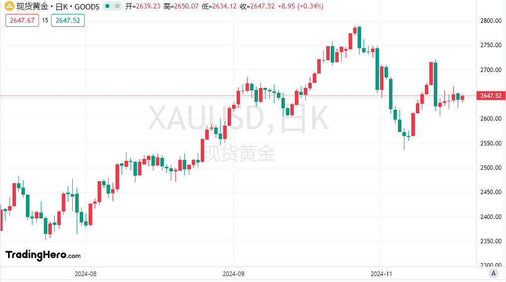 投资者仍然担心美国当选总统唐纳德·特朗普的关税计划可能引发第二波全球贸易战,这反过来又会给避险黄金价格带来顺风。