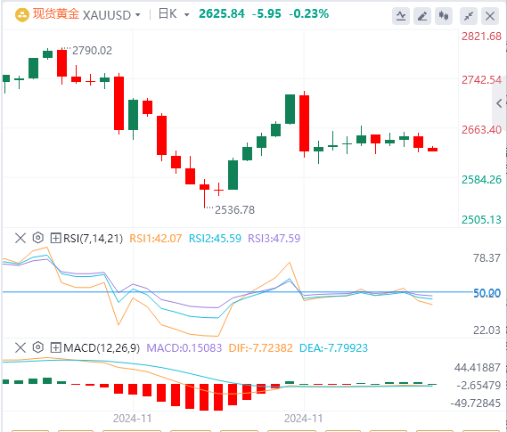 金价周四回落,因为投资者在11月非农就业数据发布之前消化了最新的美国初请失业金人数数据。美国国债收益率的飙升令黄金承压,该黄金下跌0.85%,收于2,626美元。