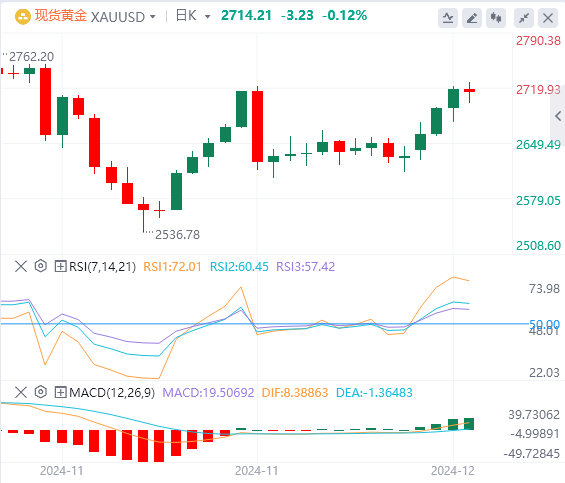 另一方面,亚市高位2,726美元附近似乎构成直接阻力,金价有望突破2,735美元关口,并测试2,748-2,750美元阻力区。如果金价持续走强,将为挑战历史最高点(10月份触及的2,800美元附近)打开空间,期间的阻力处在2,775美元附近。