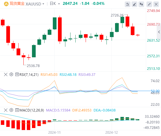 目前金价关键支撑位于2600美元,100日移动均线2597美元和11月14日低点(在2536美元附近)。